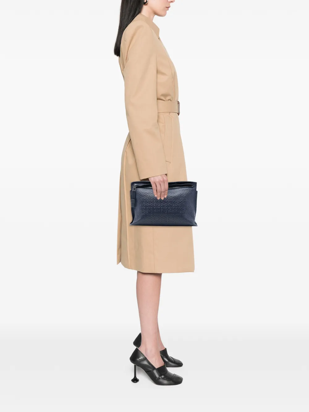 2016 Repeat T Clutch aus Leder mit Anagram-Prägung