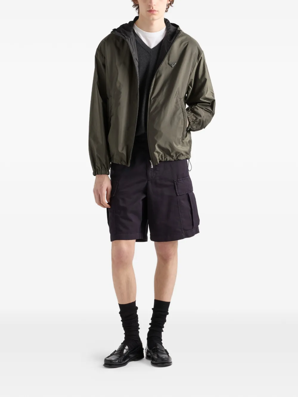 This refined and versatile blouson jacket is made of Re-Nylon with minimalist lines completed by functional details that emphasize the sporty and contemporary style of the garment.