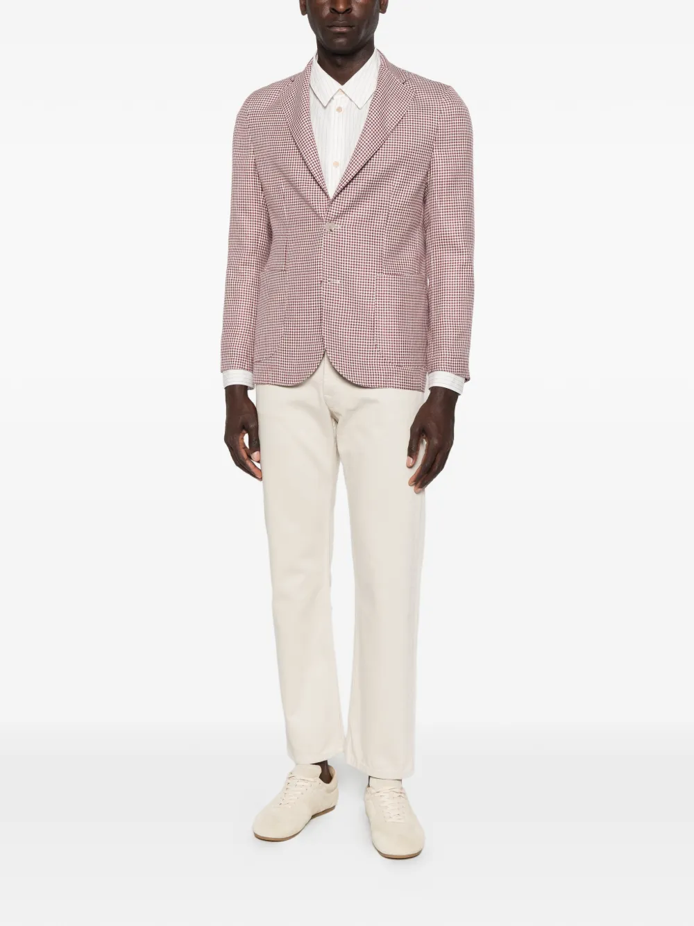 red houndstooth pattern front button fastening long sleeves front patch pockets