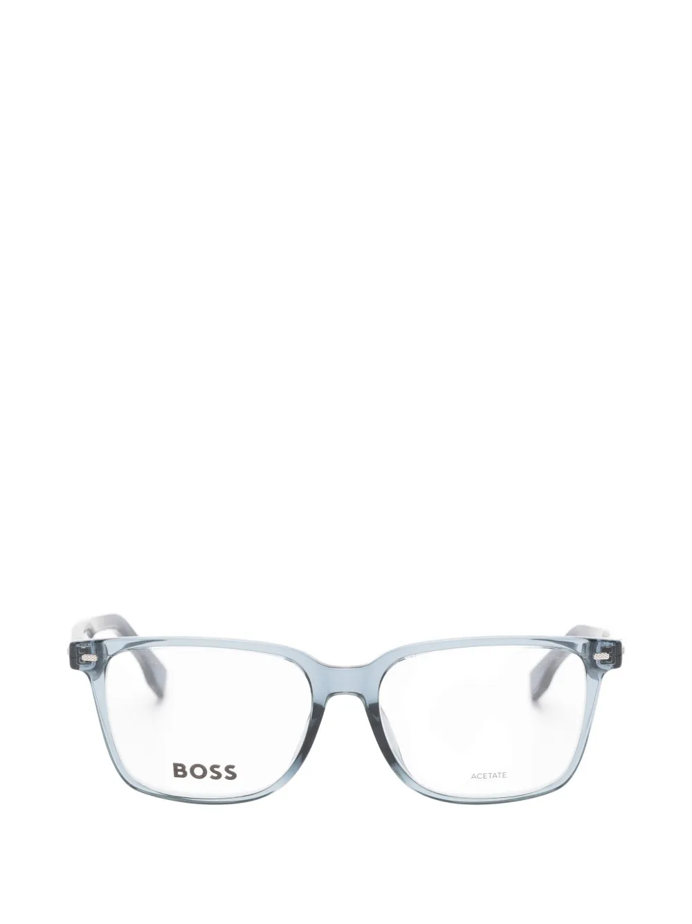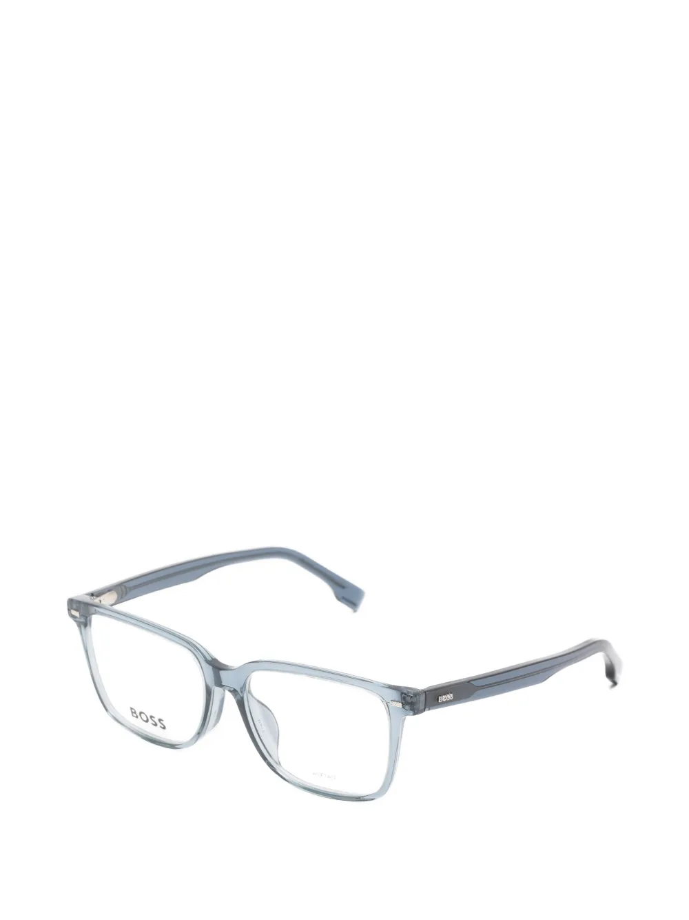 blue rectangle frame logo plaque transparent finish curved arms nose pads All glasses from FARFETCH are sold as non-prescription frames. These glasses come with a protective case.