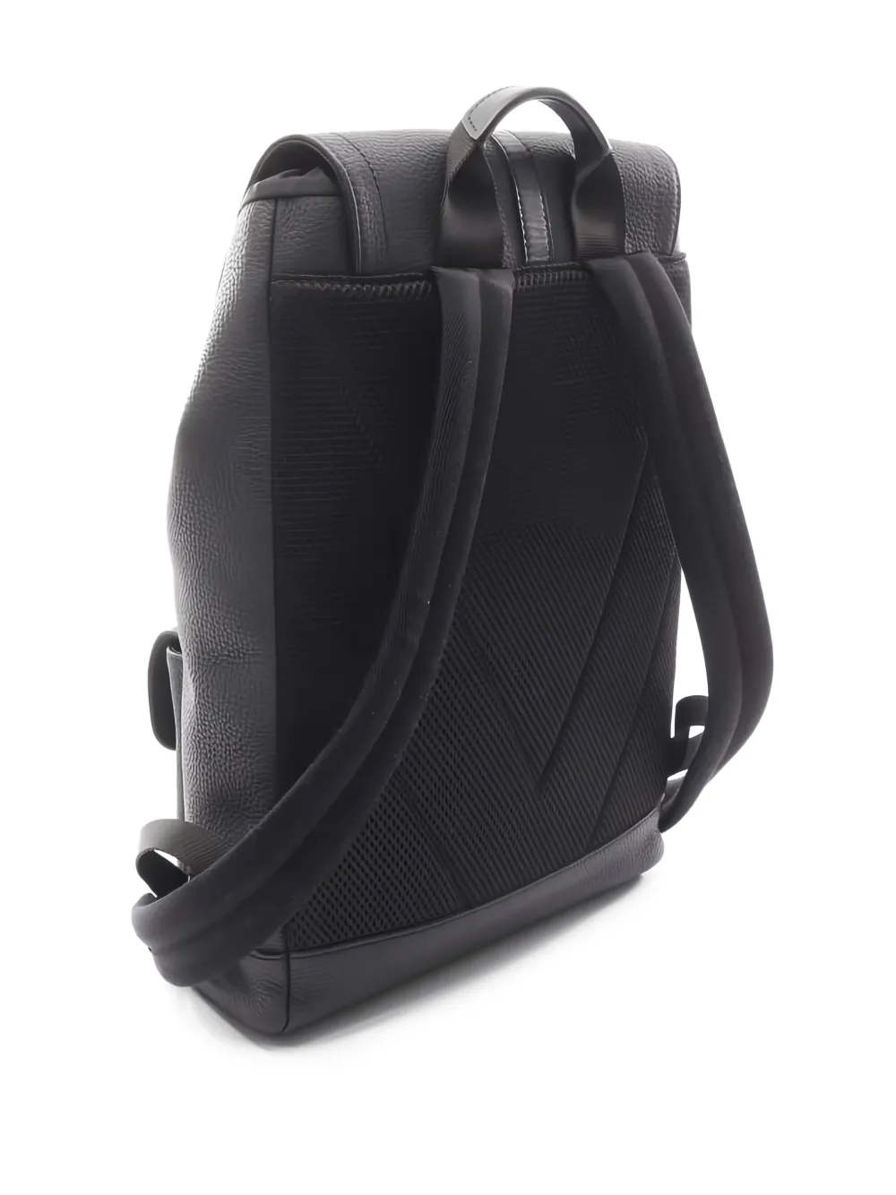 black leather top handle adjustable shoulder straps front pocket buckle details Condition: EXCELLENT. This previously owned item is in near-perfect condition with no signs of damage or use.
