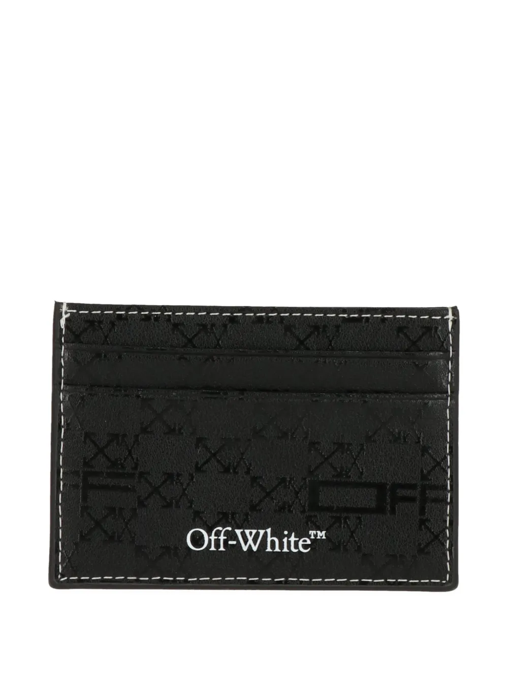 black monogram pattern contrast topstitching multiple card slots logo print to the front