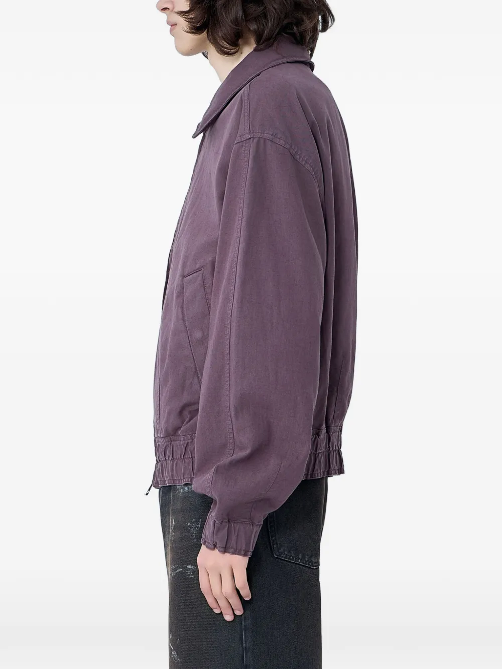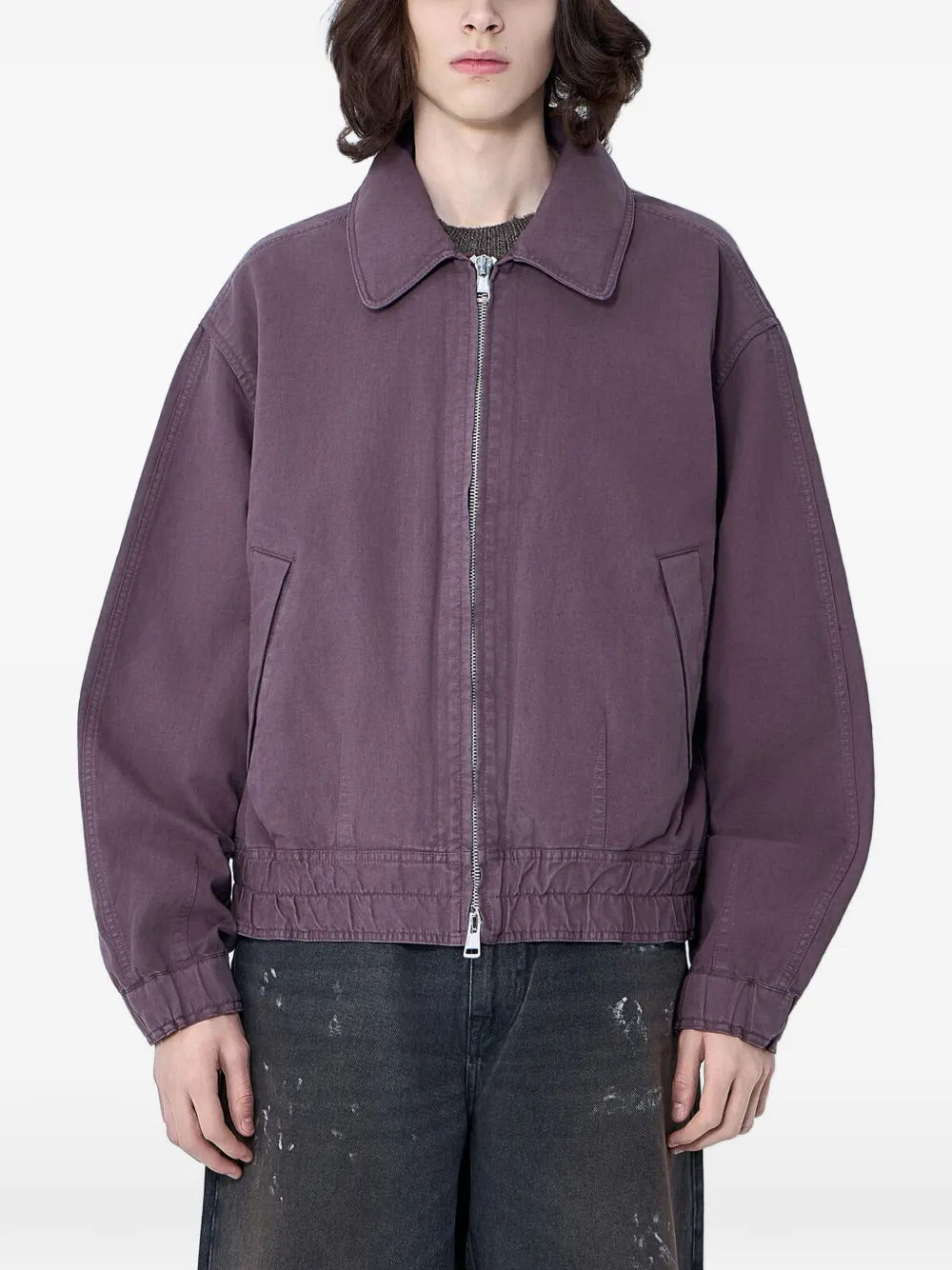 purple spread collar front zip fastening side pockets