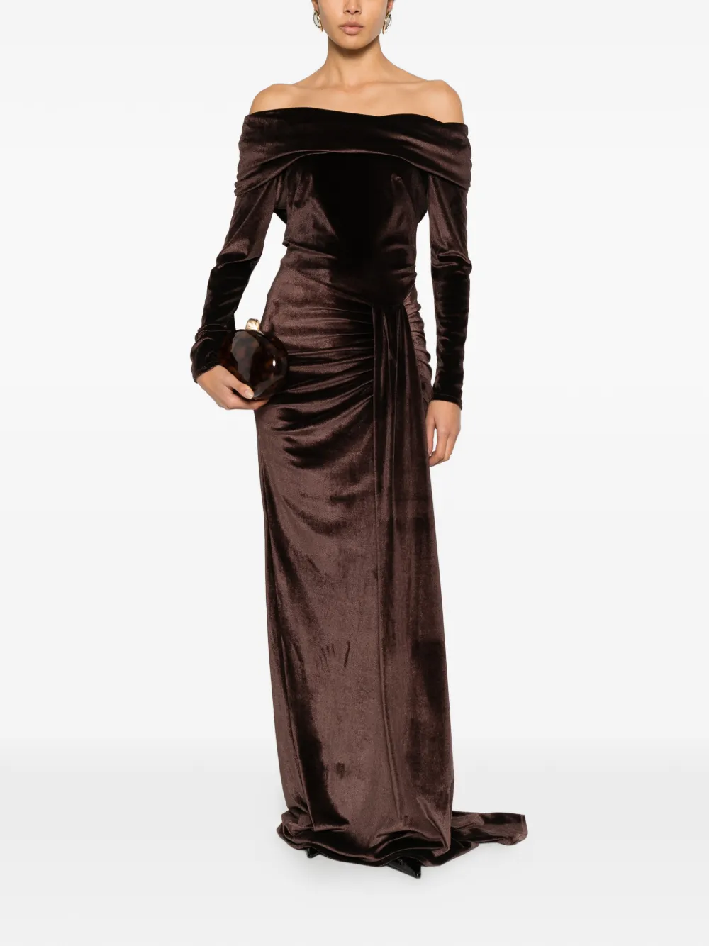 robe longue drapée à épaules dénudées
