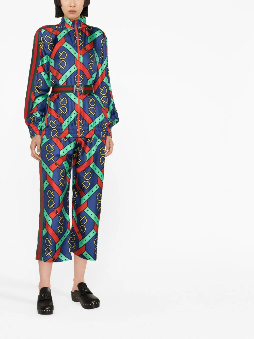 Horsebit strap-print silk jacket