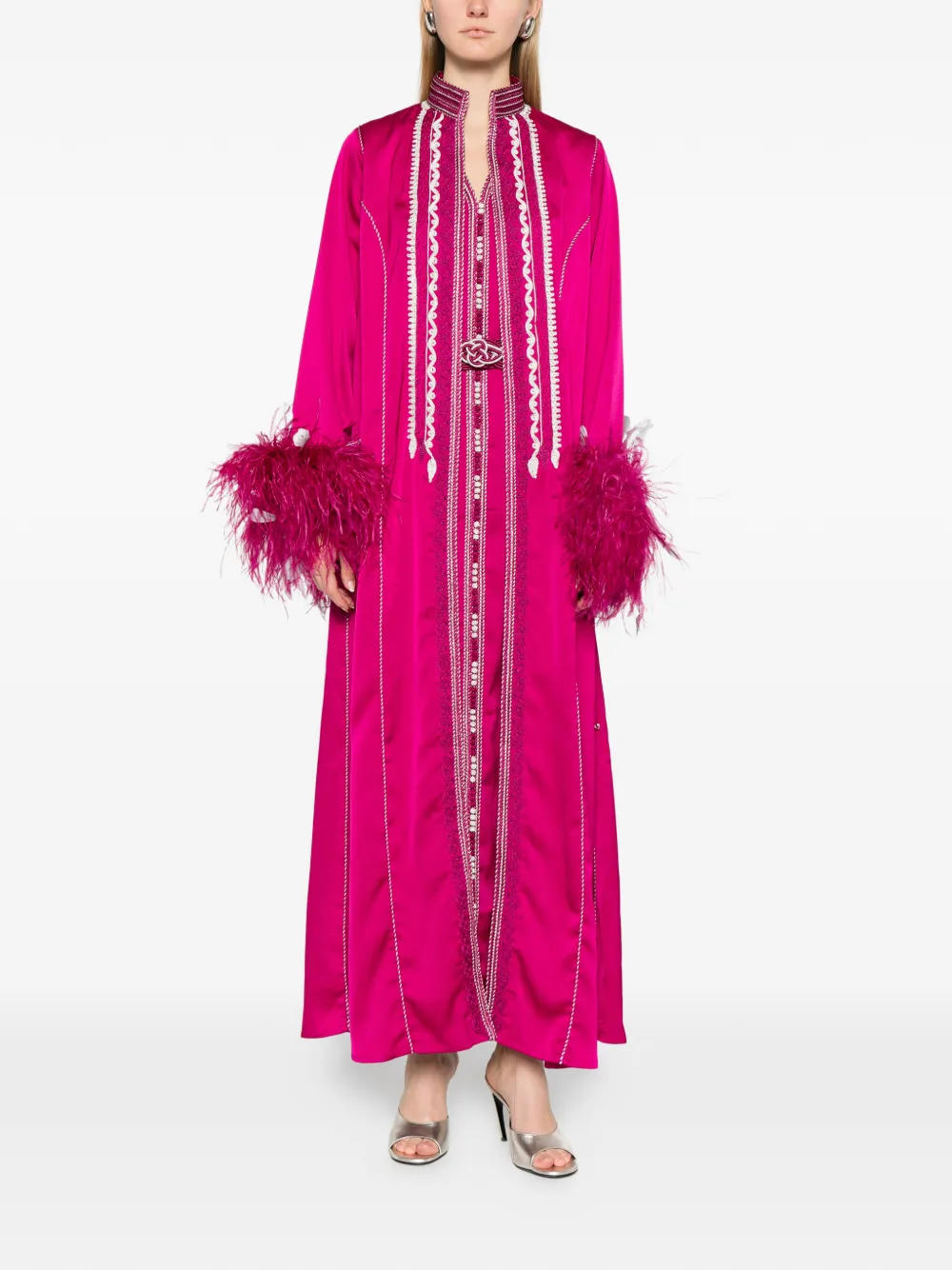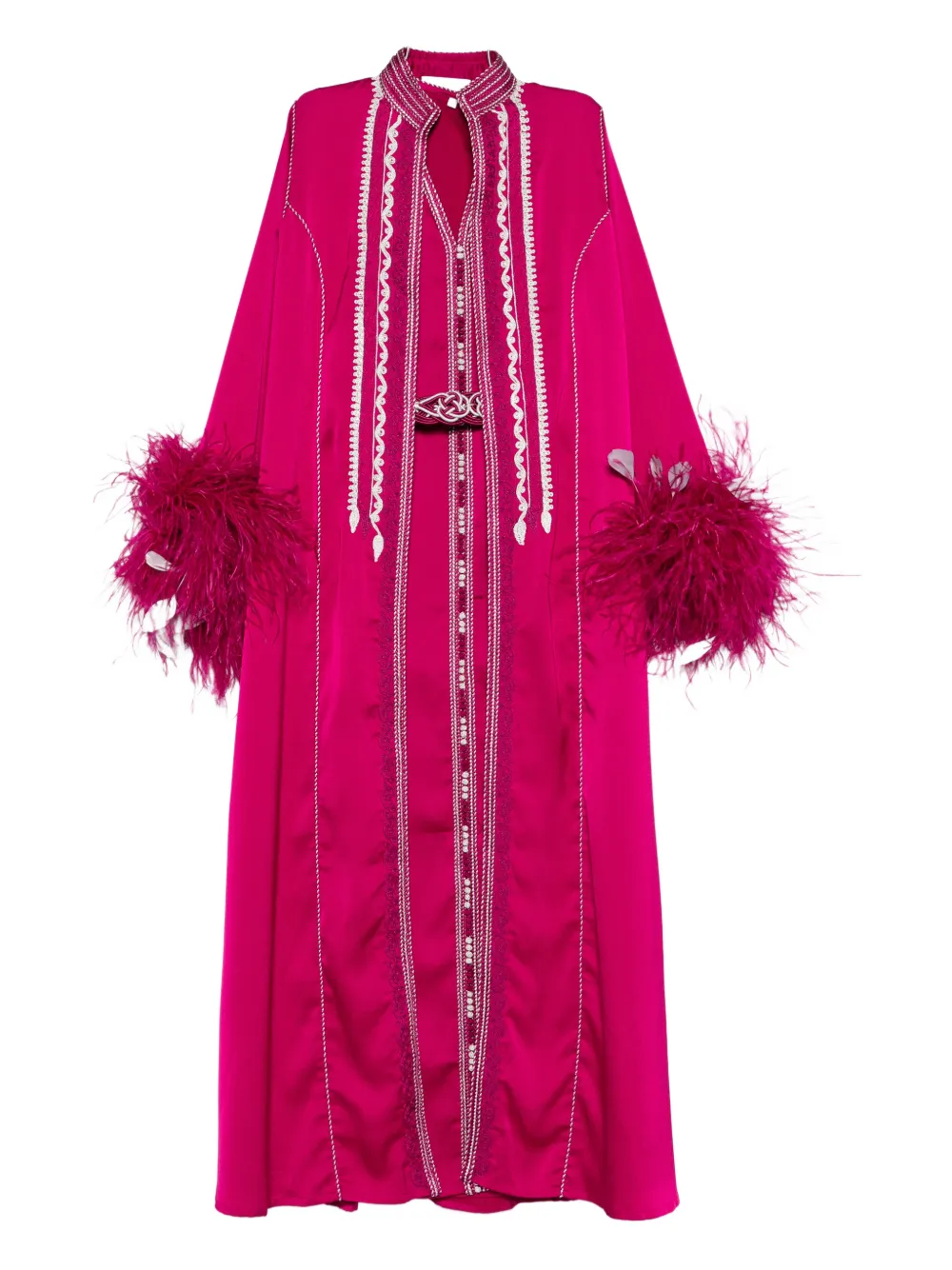 embroidered feather kaftan set