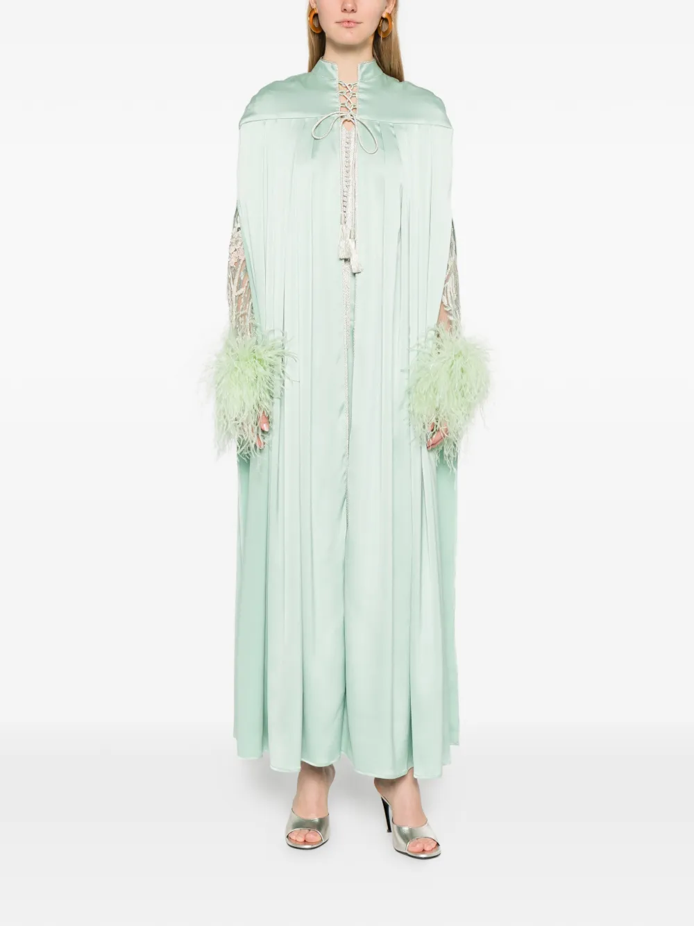 embroidered feather-trimmed jumpsuit