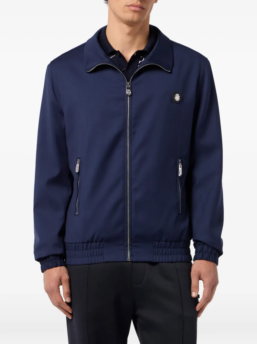 zip-up badge wool jacket