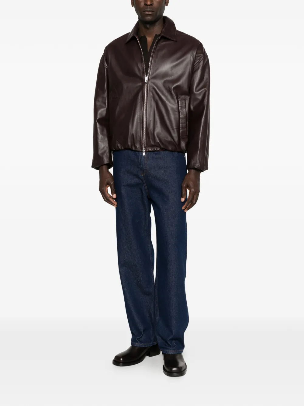 zip-up leather jacket