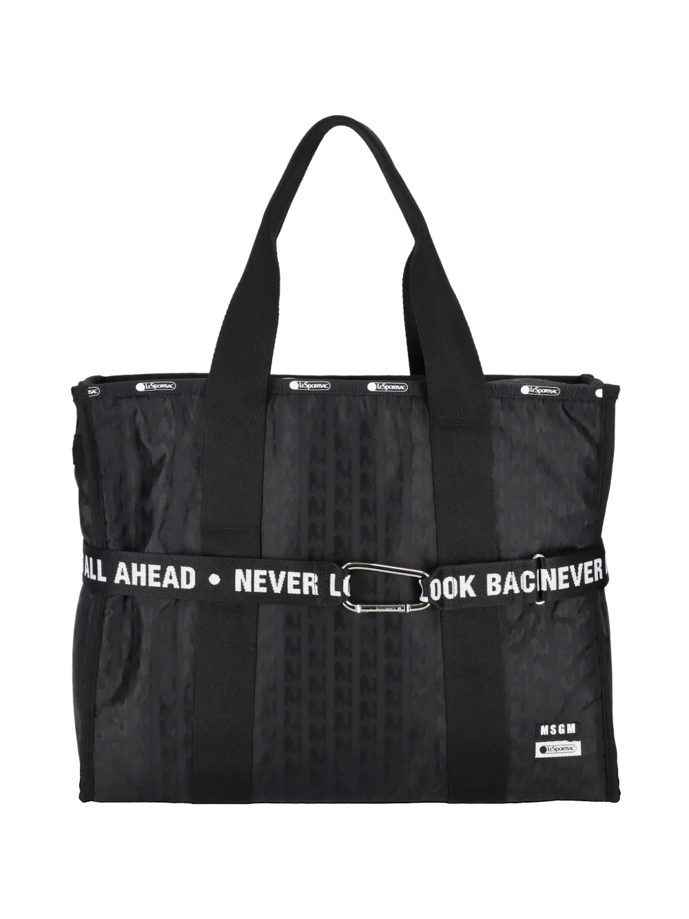 patterned lettering strap tote bag
