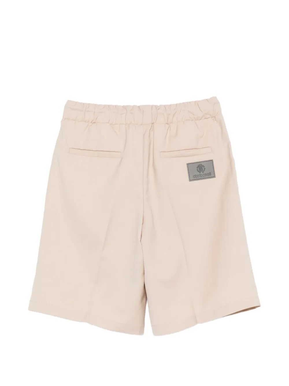 beige elasticated drawstring waistband two side slit pockets two rear welt pockets logo patch to the rear