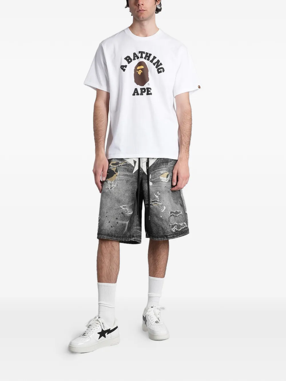A BATHING APE® shorts de mezclilla College Monogram