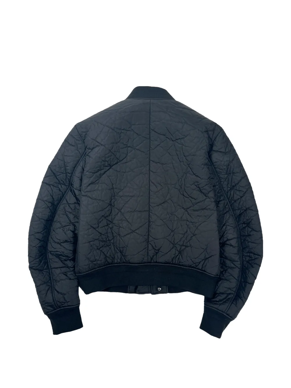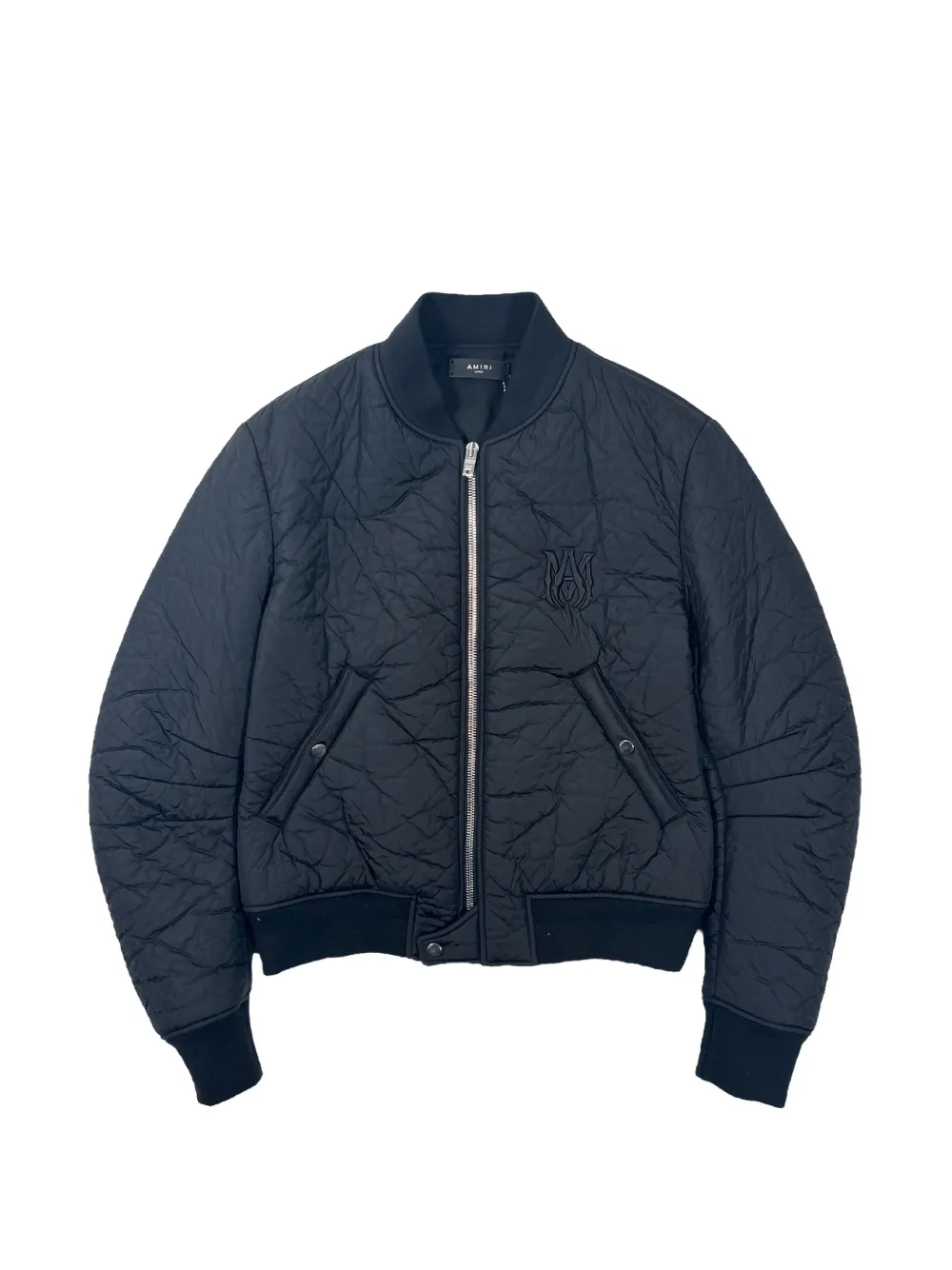 navy blue crinkle effect MA Logo embroidery at the chest front zip fastening band collar long sleeves two side welt pockets ribbed cuffs and hem silver-tone hardware