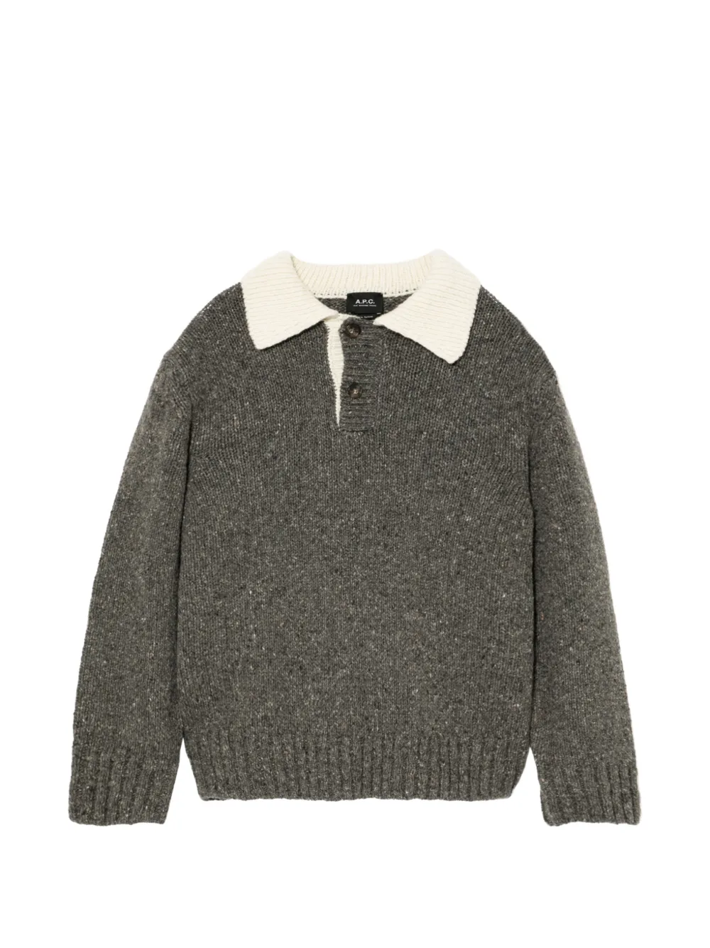 heather grey speckled knit contrasting polo collar long sleeves ribbed trim