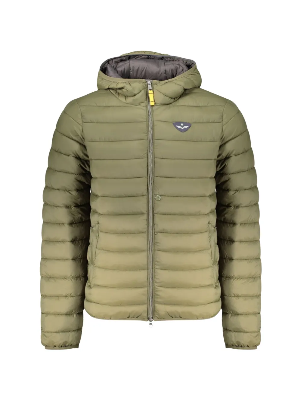 green quilted finish logo patch to the chest front zip fastening two side zip-fastening pockets long sleeves straight hem