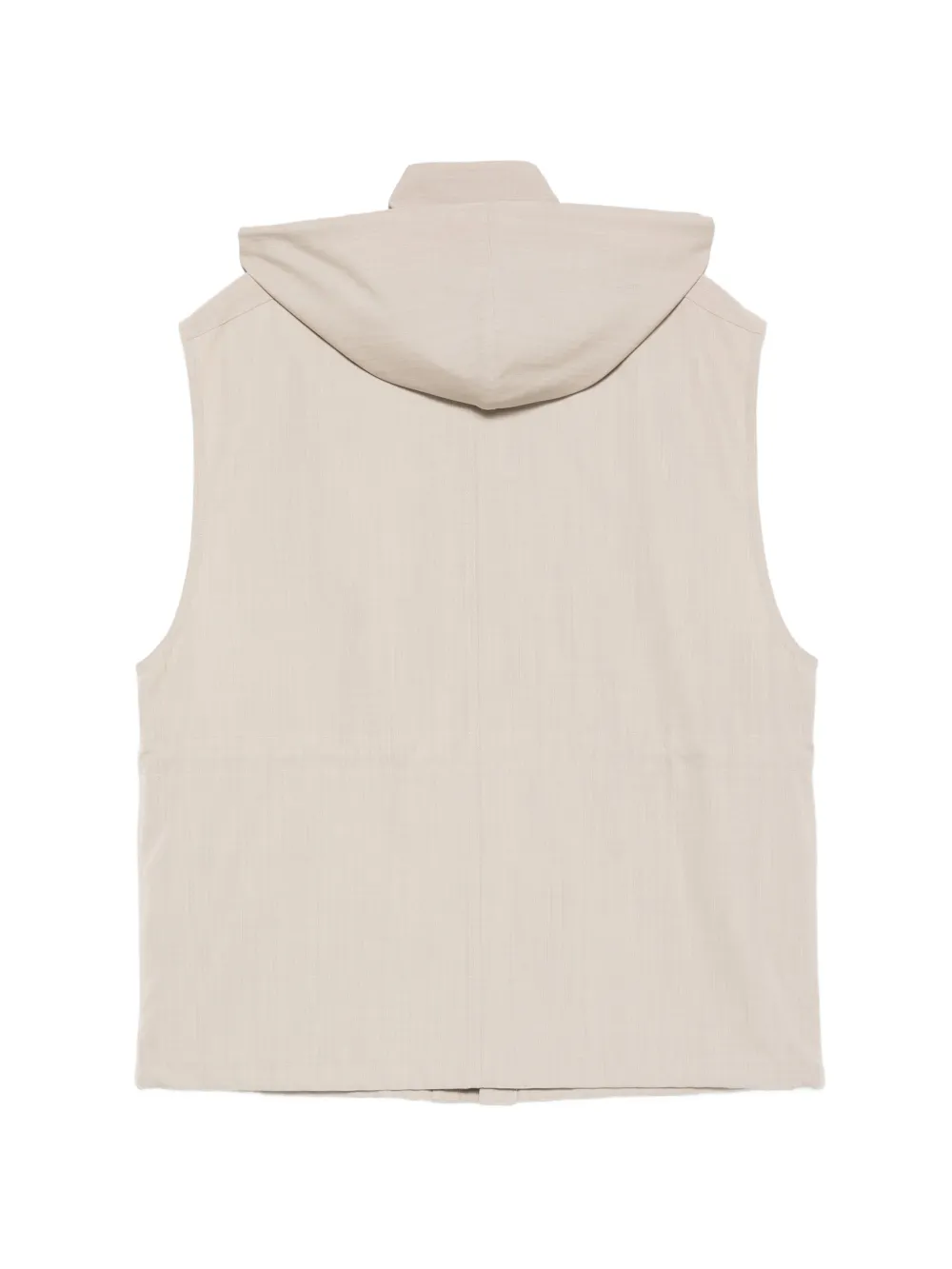 beige lana capucha con cordones bolsillos con solapa en la parte delantera sin mangas cierre con botón de trenca en la parte delantera