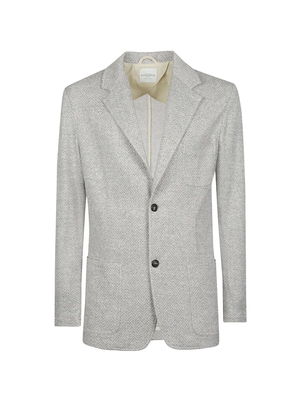 grey button fastening notched lapels three front pockets