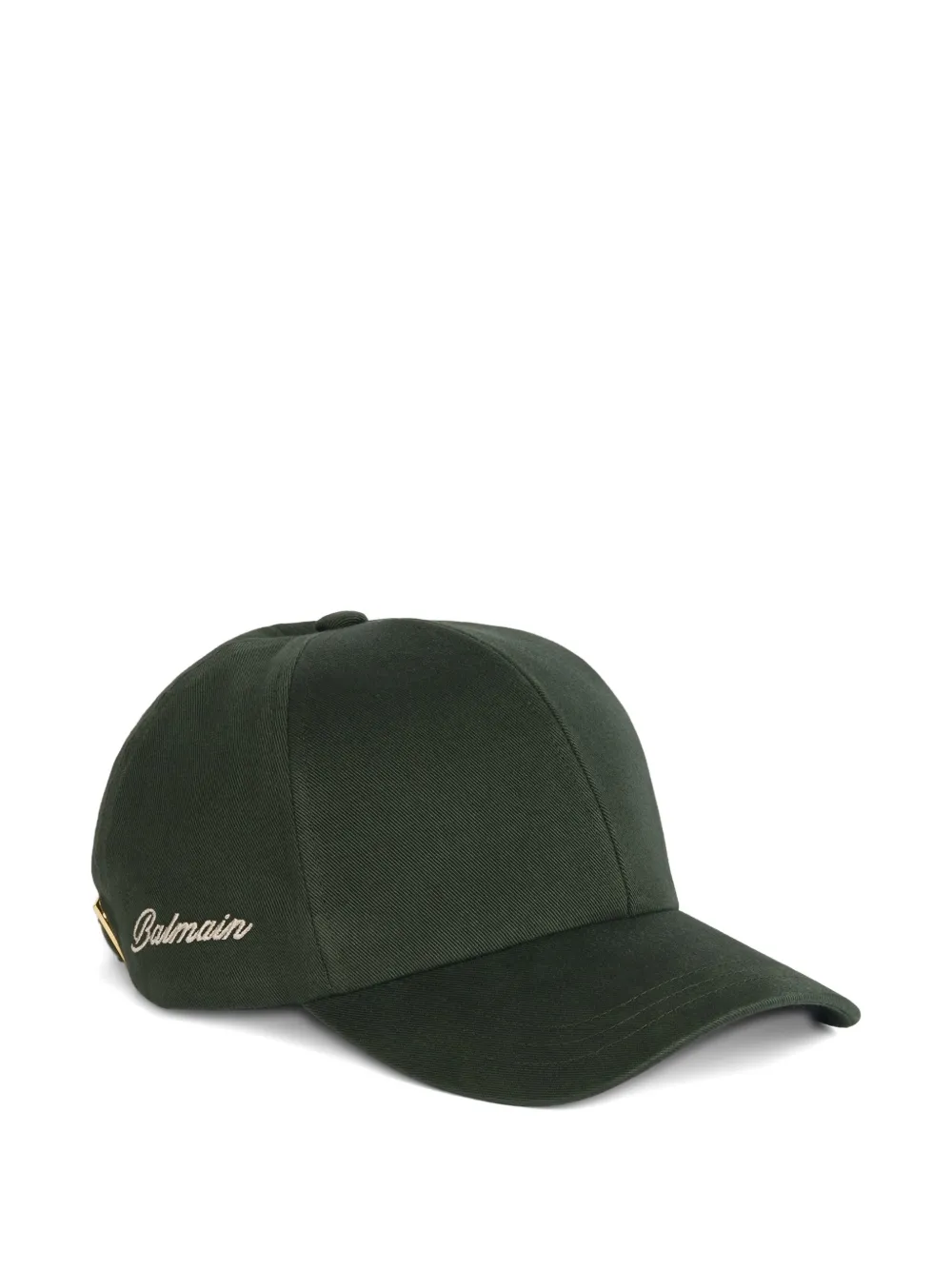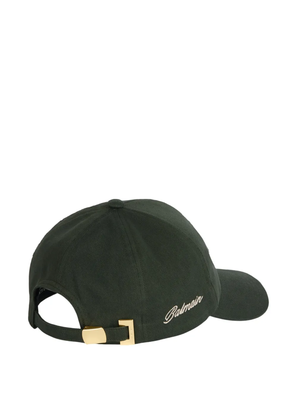 contrasting Balmain logo printed on the side curved visor adjustable tab at the back rectangular gold metal Balmain-engraved buckle main material: 100% cotton made in Bulgaria