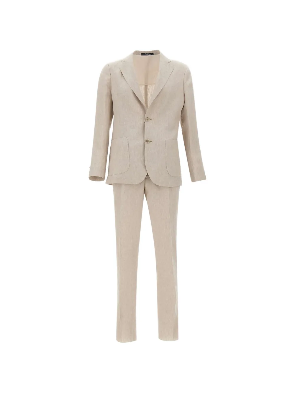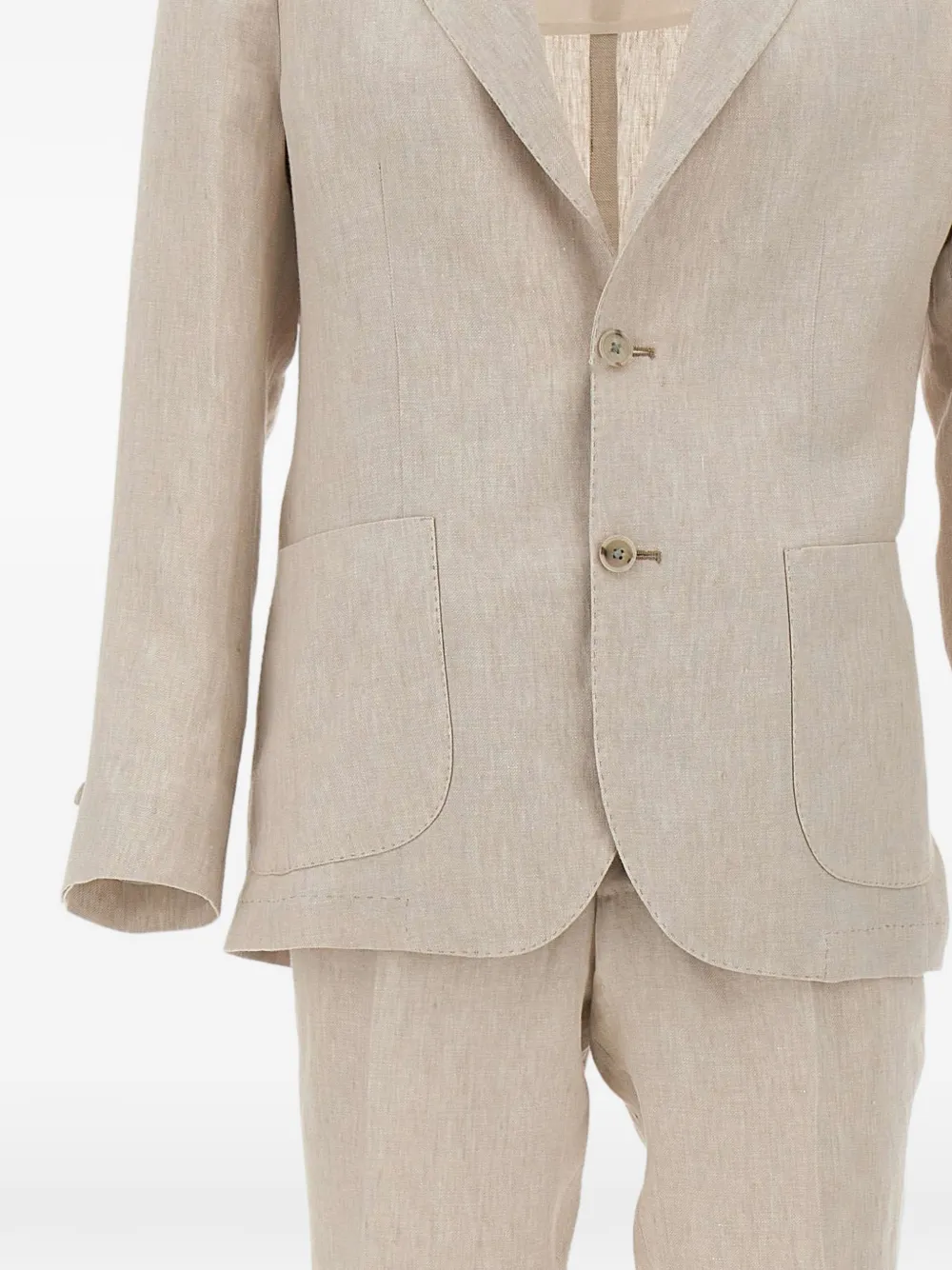 beige patch pockets double back vent front pleats rear welt pockets one button sleeve hem