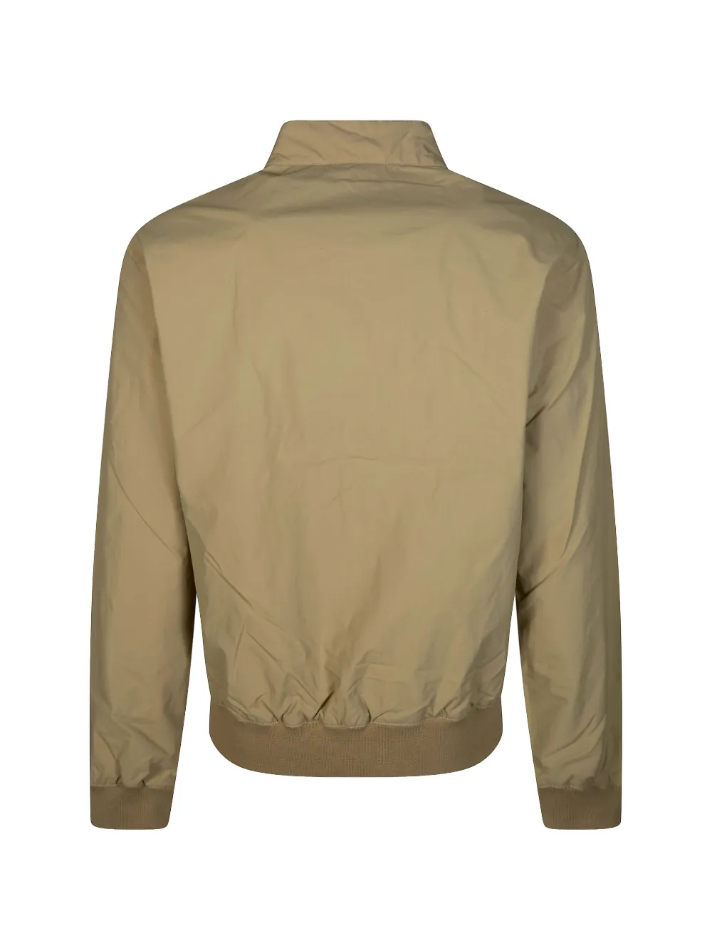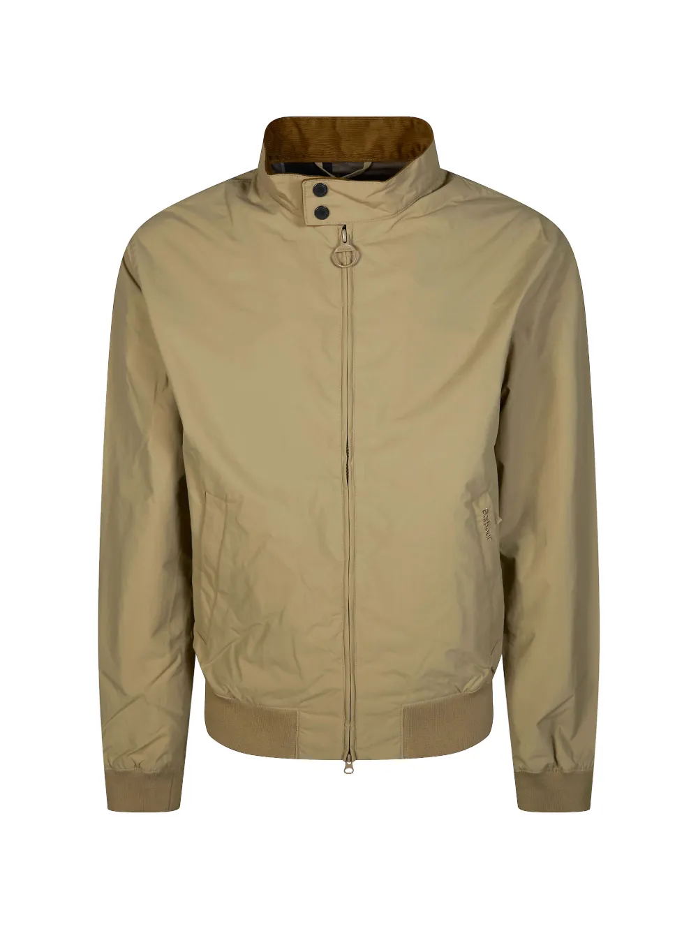 beige zip fastening ribbed hem button detail embroidered logo