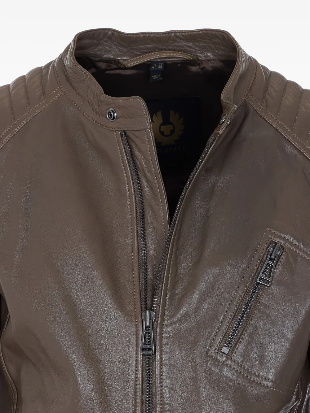 green frontal zip closure zip pockets lateral patch logo crew neck