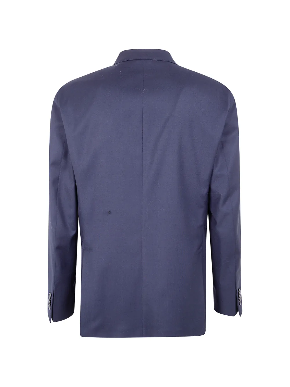 blue wool double-breasted button fastening peak lapels long sleeves buttoned cuffs chest patch pocket two front patch pockets belt loops