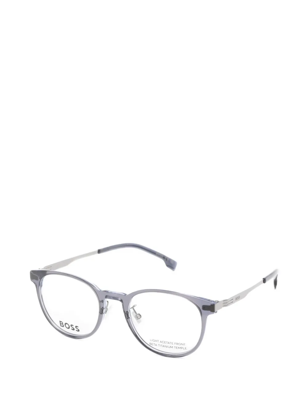 blue round frame clear lenses nose pads logo-engraved temples curved tips All glasses from FARFETCH are sold as non-prescription frames. These glasses come with a protective case.