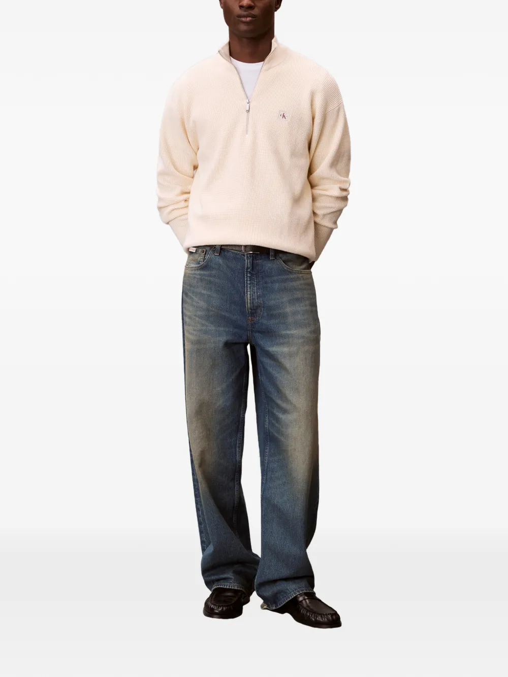 logo-patch zip-neck sweater