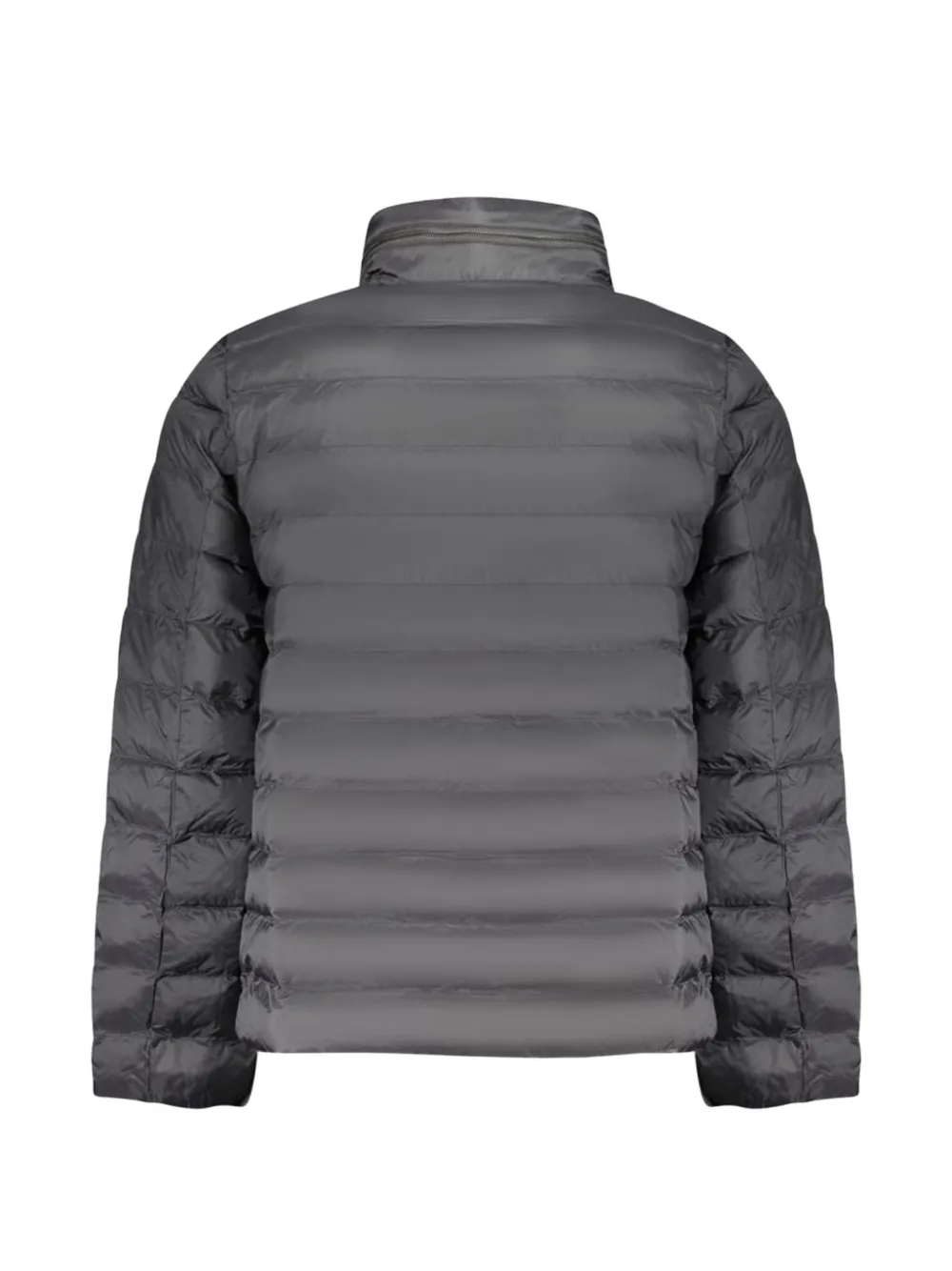 black padded design zip fastening high neck long sleeves side zip-fastening pockets logo embroidered straight hem
