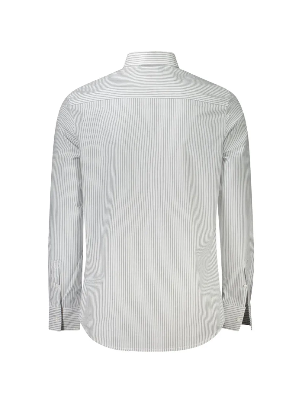 white vertical-stripe pattern slim fit front button fastening classic collar long sleeves buttoned cuffs chest patch pocket curved hem