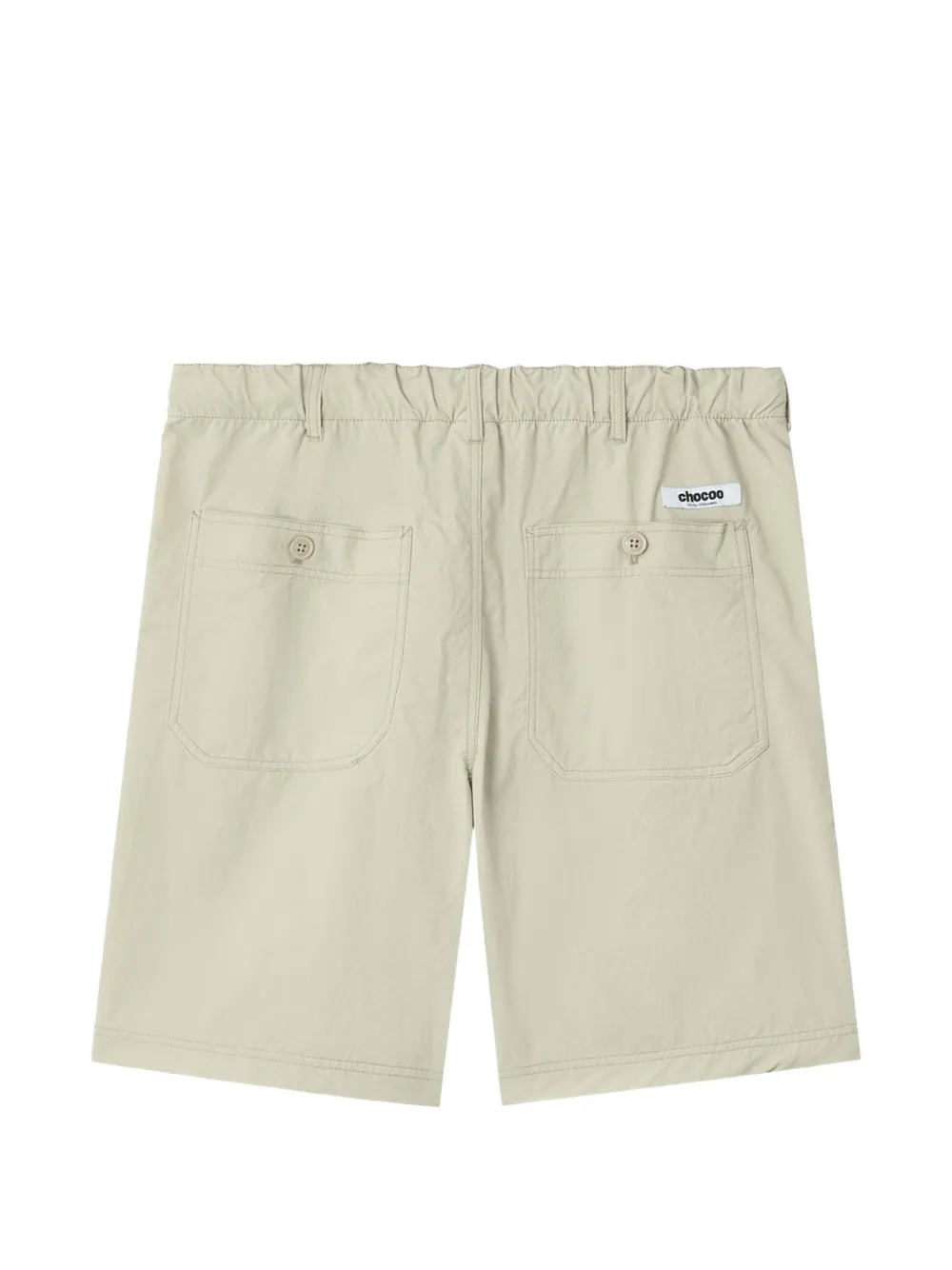 beige elasticated waistband button and zip fly fastening two front patch pockets two rear button-fastening pockets logo patch to the rear logo print to the front