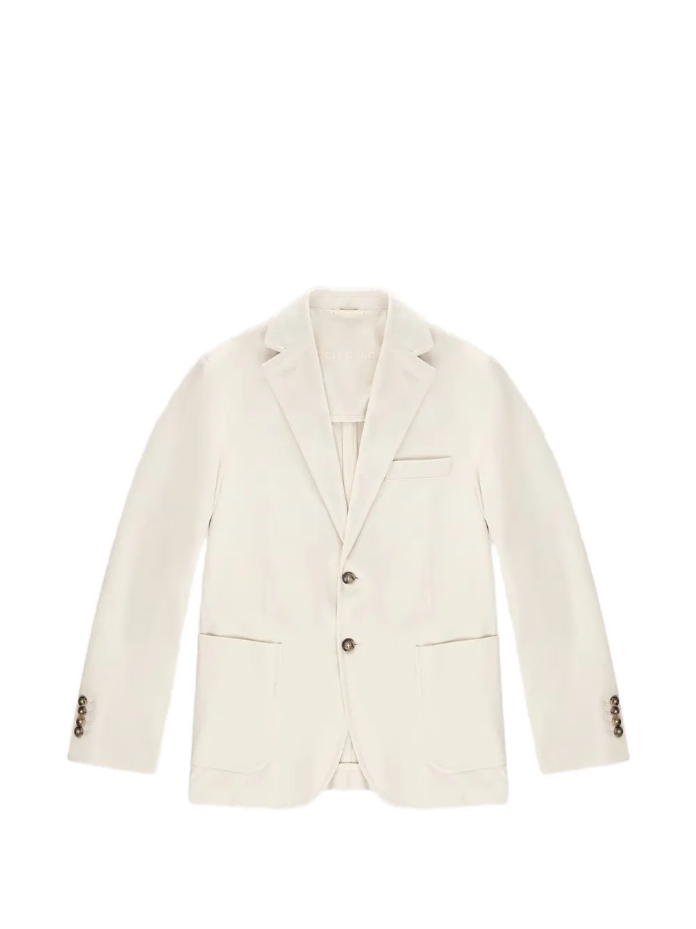 paper white patch pockets notched lapels long sleeves buttoned cuffs single-breasted button fastening