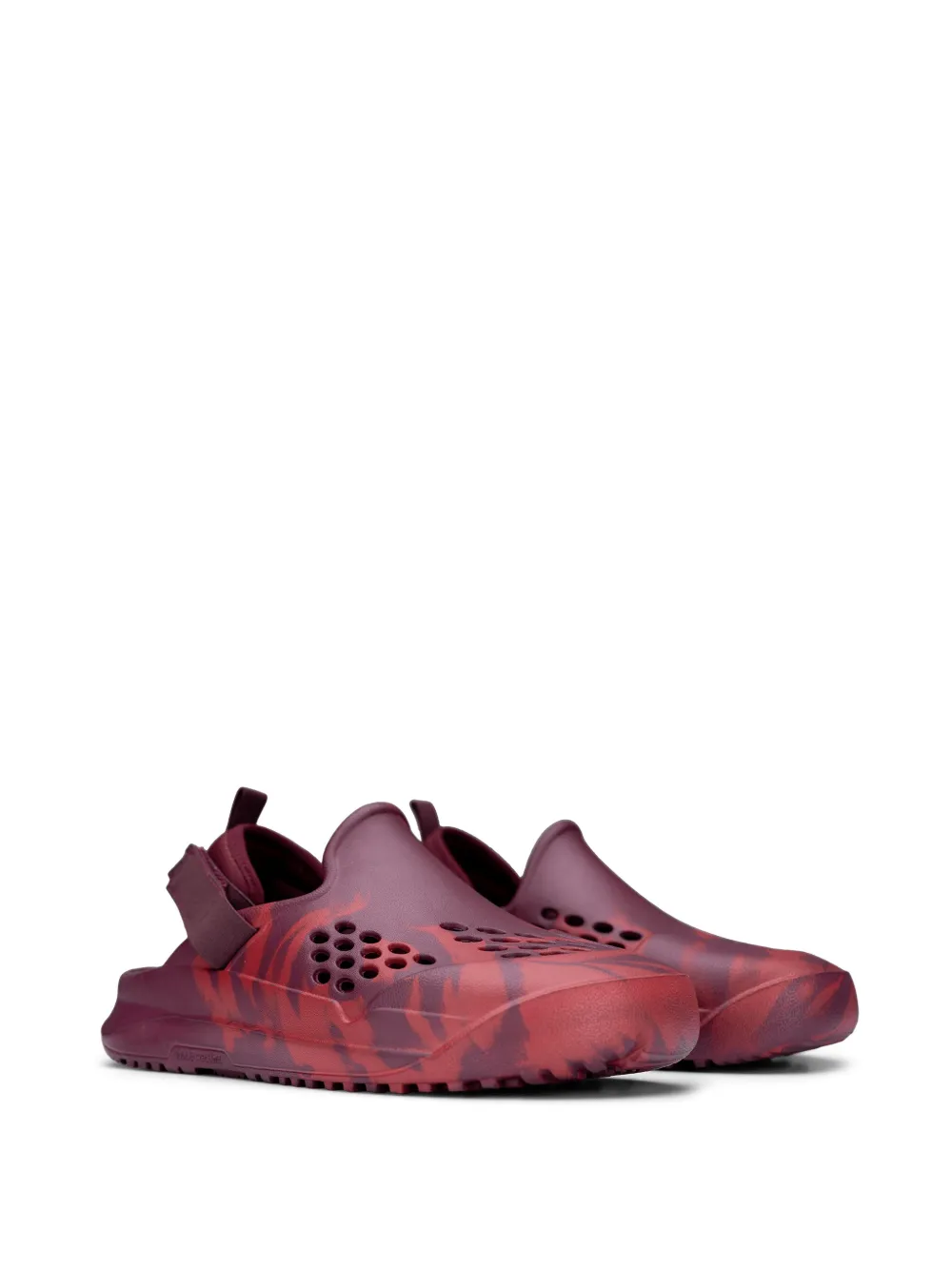 dark red tie-dye pattern perforated detailing touch-strap fastening pull-tab at the heel round toe ridged rubber sole