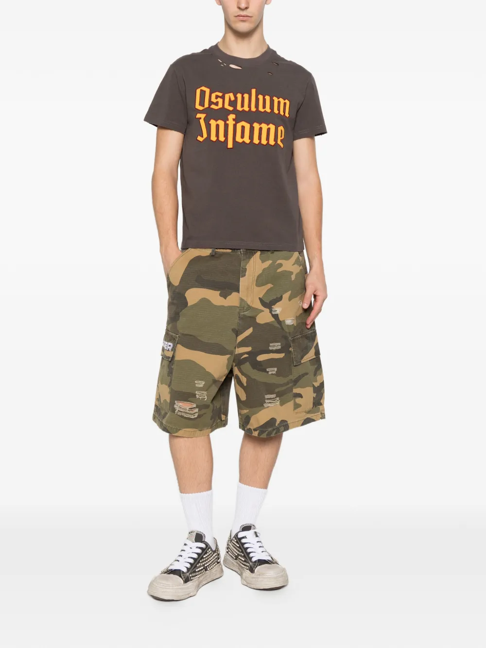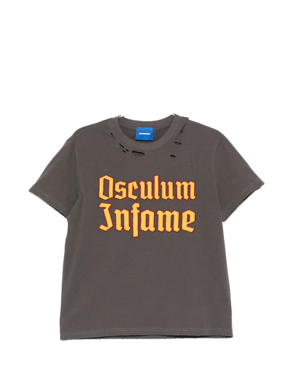 grey slogan print to the front distressed effect crew neck short sleeves straight hem logo print to the rear