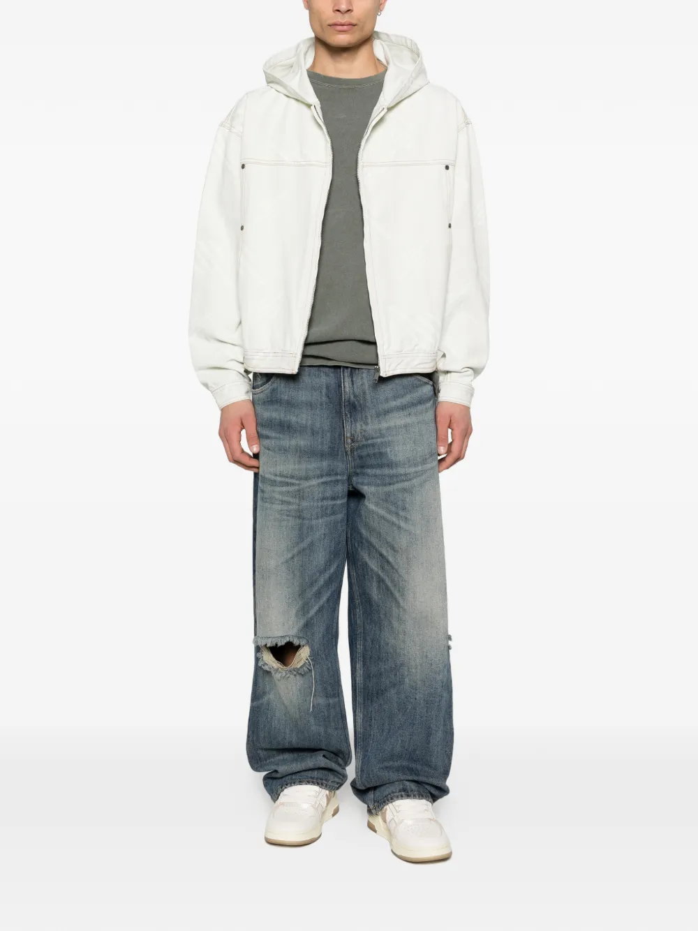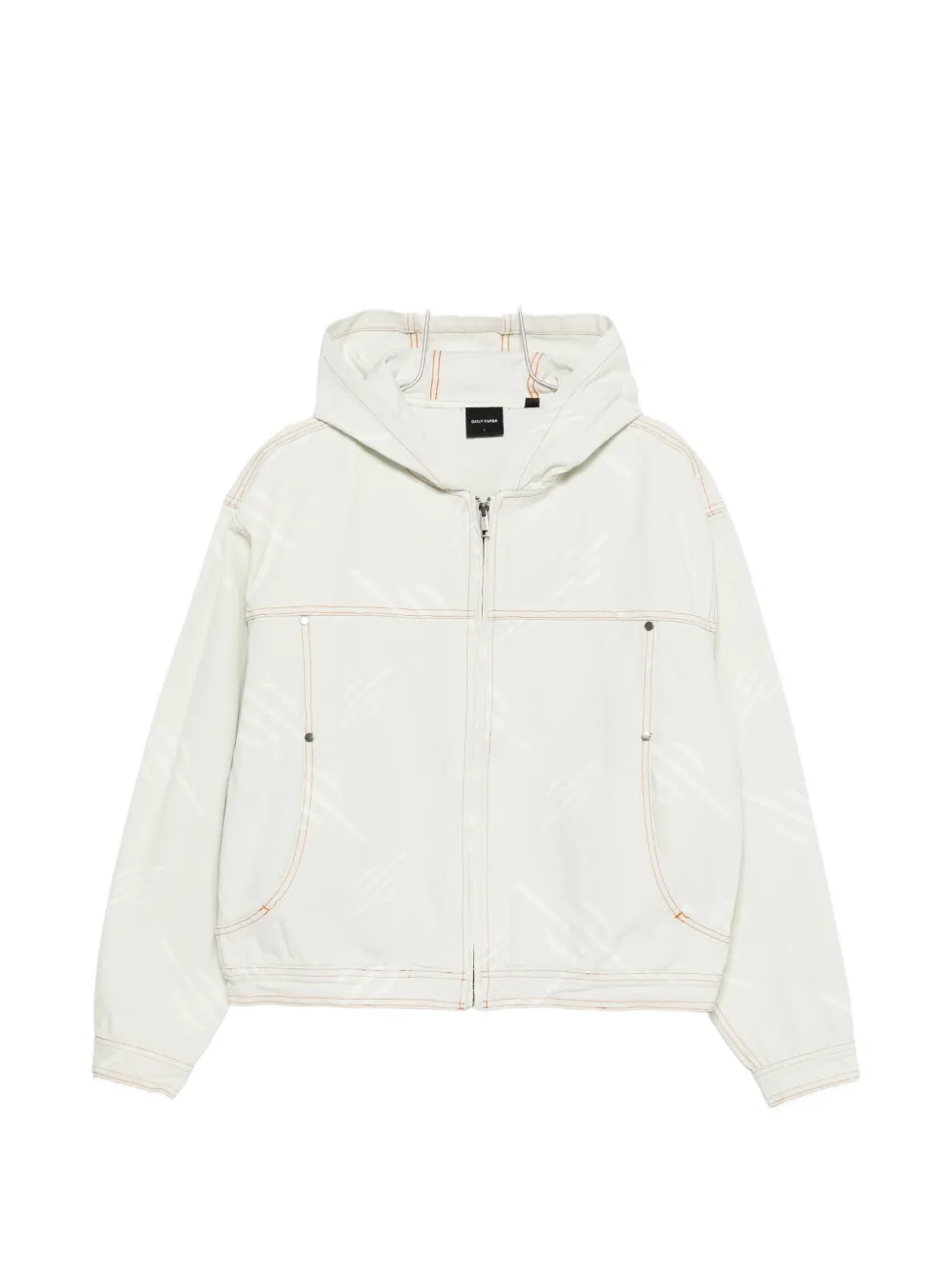 beige patterned front zip fastening hooded front welt pockets topstitching