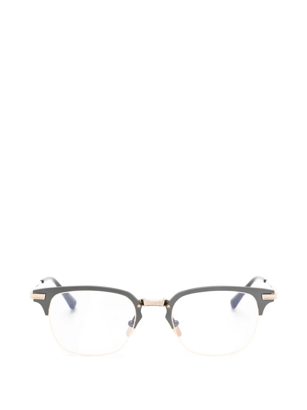 black gold-tone hardware engraved detailing clear lenses nose pads curved tips All glasses from FARFETCH are sold as non-prescription frames. These glasses come with a protective case.