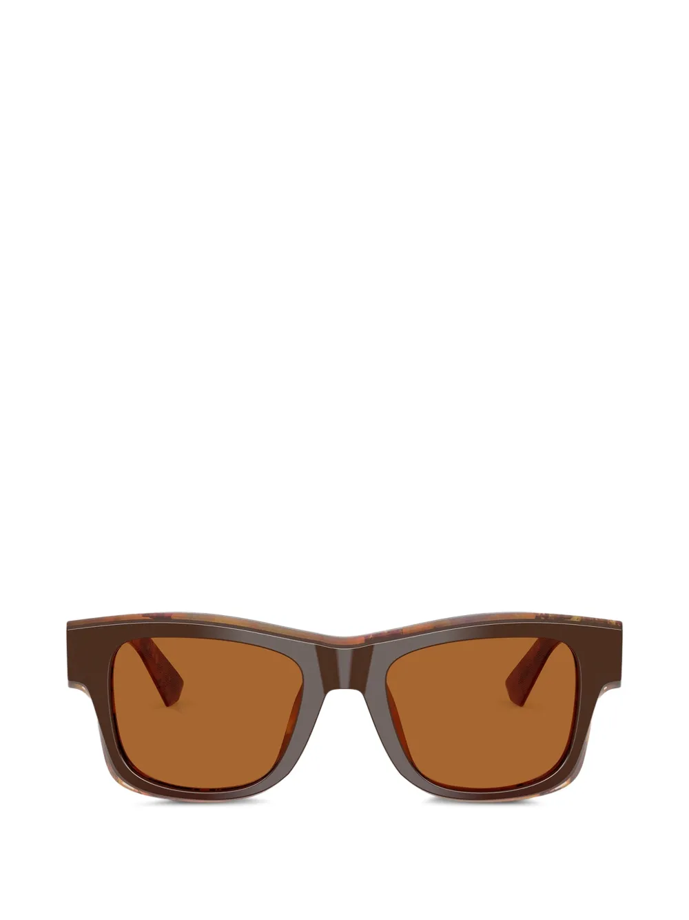 brown rectangular frame tinted lenses nose pads These glasses come with a protective case.
