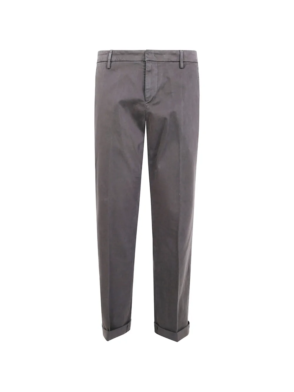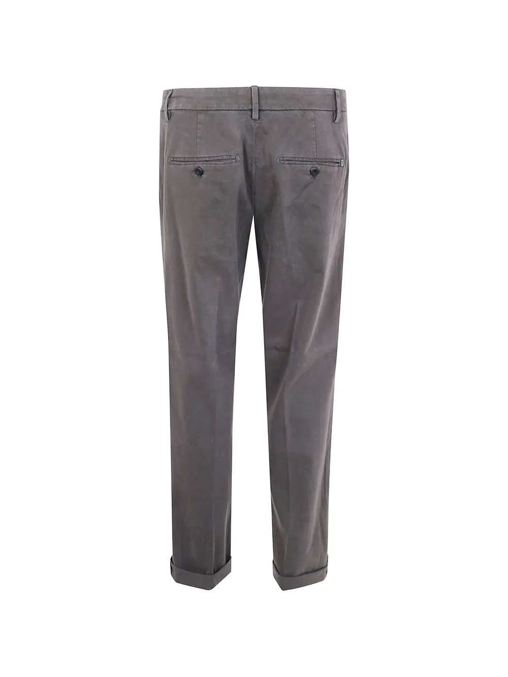 grey belt loops concealed front fastening side slip pockets turn-up cuffs back welt pockets