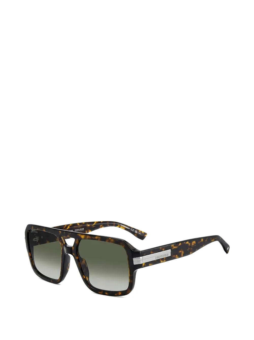 dark brown tortoiseshell effect geometric frame gradient lenses double bridge silver-tone logo plaque curved tips These glasses come with a protective case.