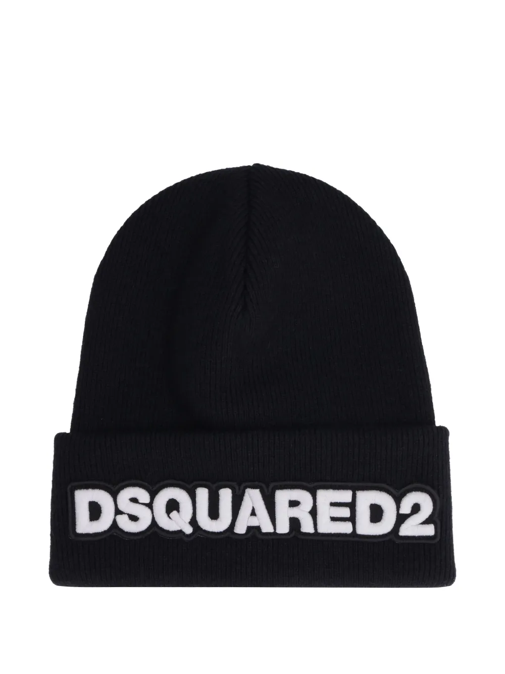 black ribbed knit turn-up brim