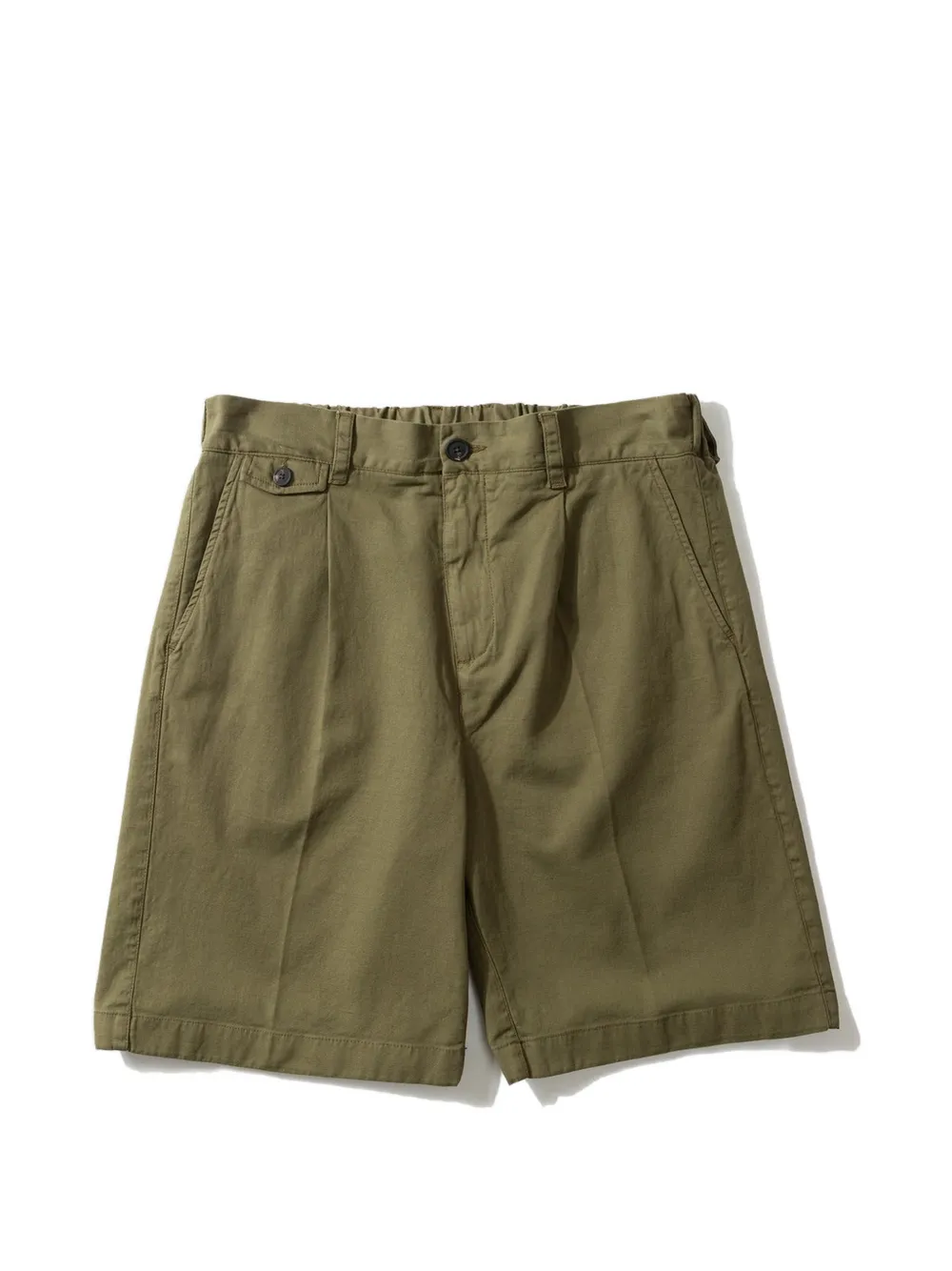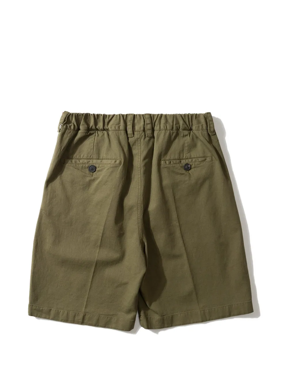 khaki button detail pleated front elasticated waistband side pockets back pockets