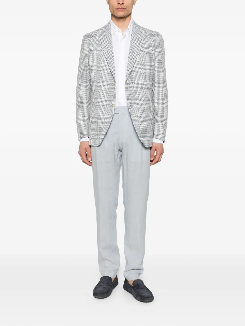 blue and white check pattern button fastening notched lapels patch pocket long sleeves