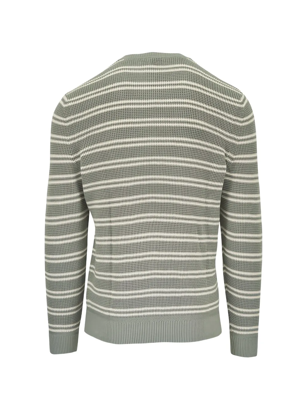 green and beige striped pattern round neck long sleeves ribbed trims