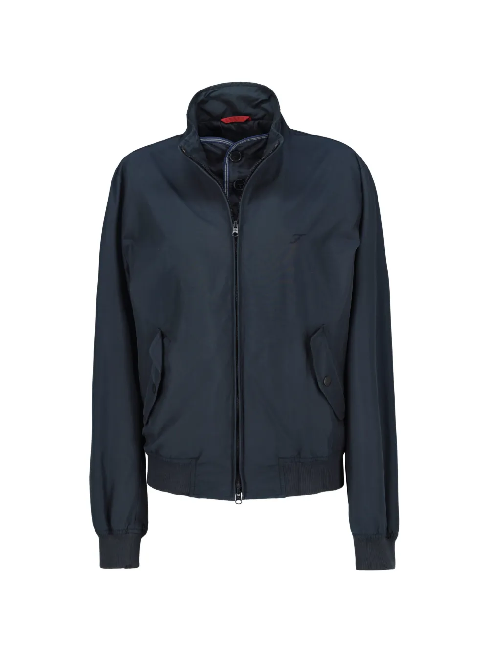 blue zip fastening welt pockets high neck