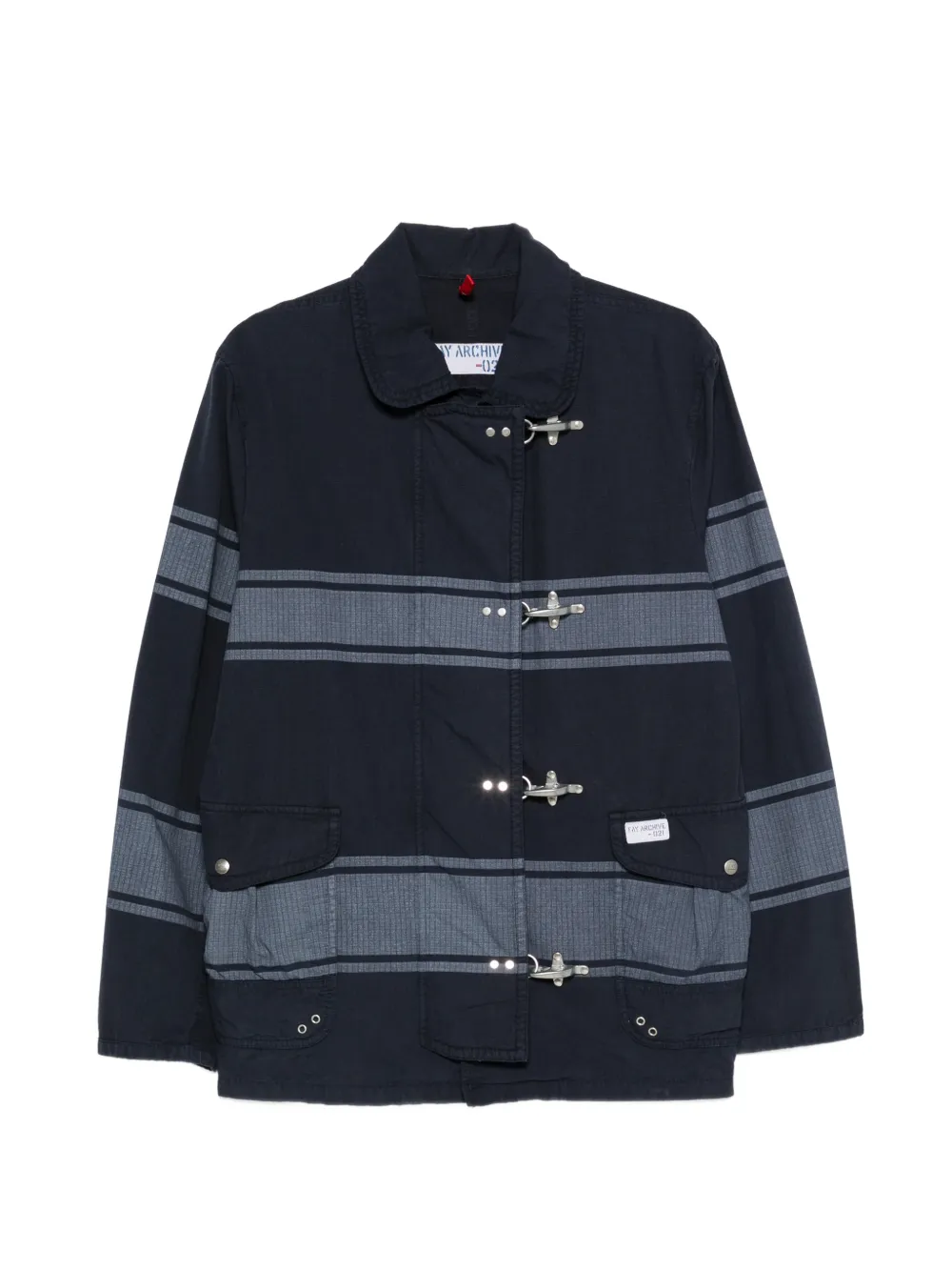 blue cotton striped pattern toggle fastening patch pockets classic collar