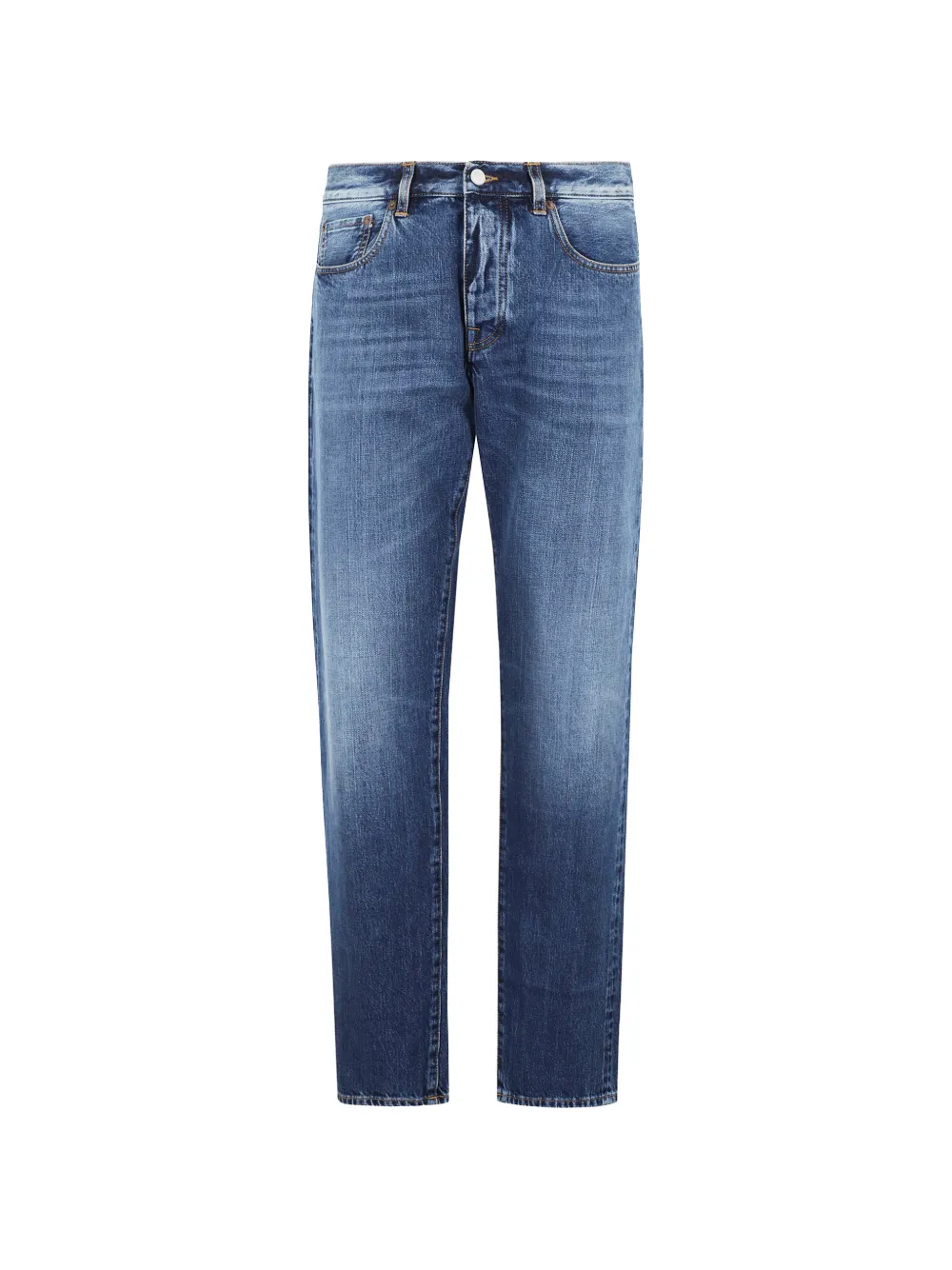 blue patch detail five pockets straight leg button fly