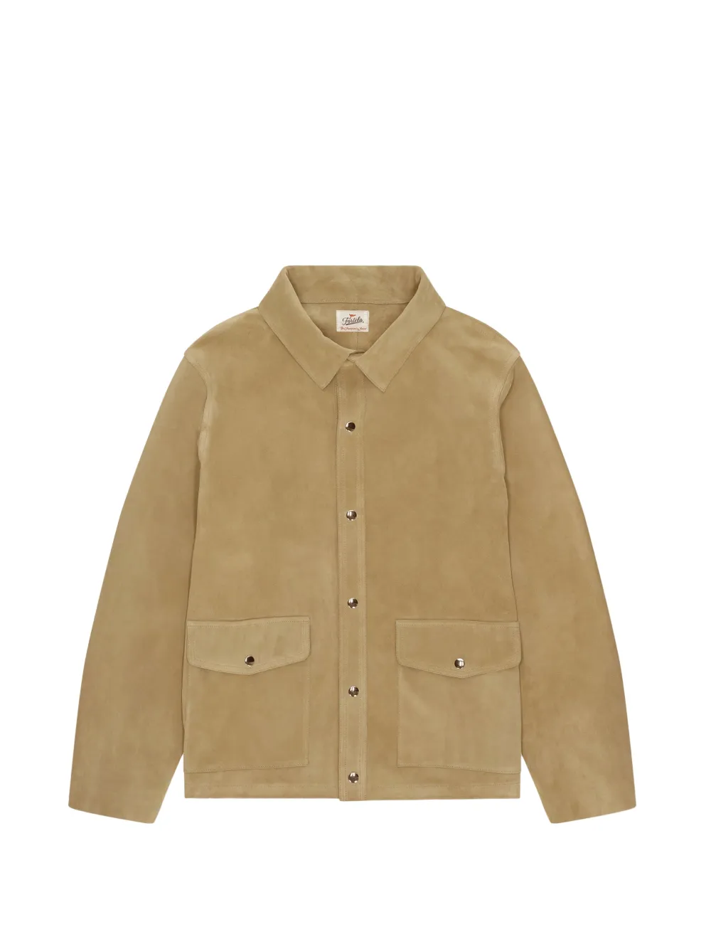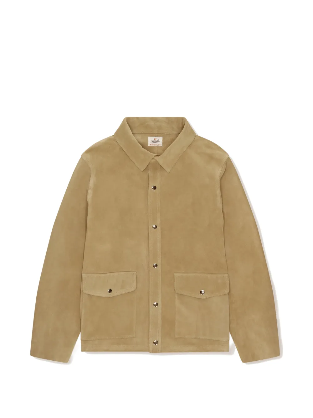 beige suede front patch pockets button closure regular fit buttoned cuffs