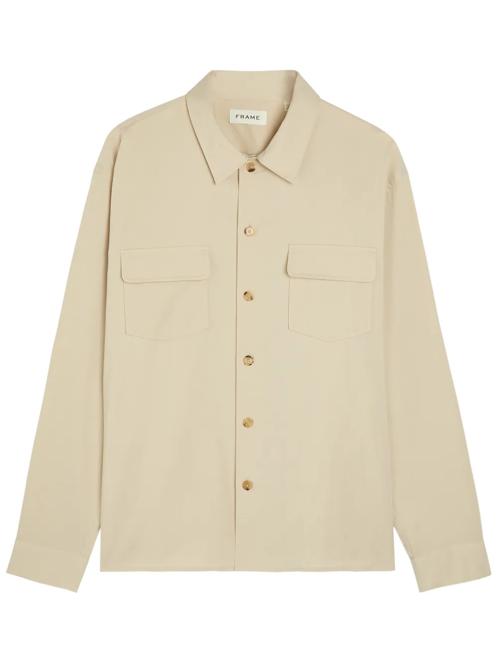 light beige button fastening point collar long sleeves two chest pockets buttoned cuffs
