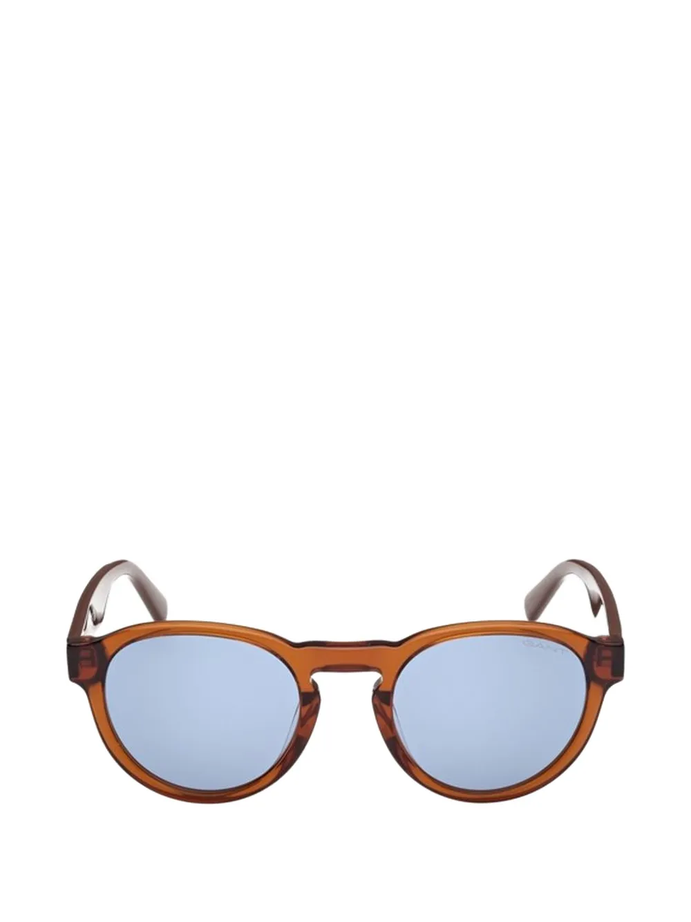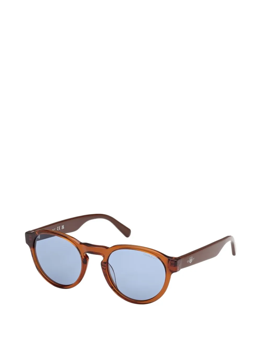 brown round frame tinted lenses logo print to the arm straight arms curved tips These glasses come with a protective case.