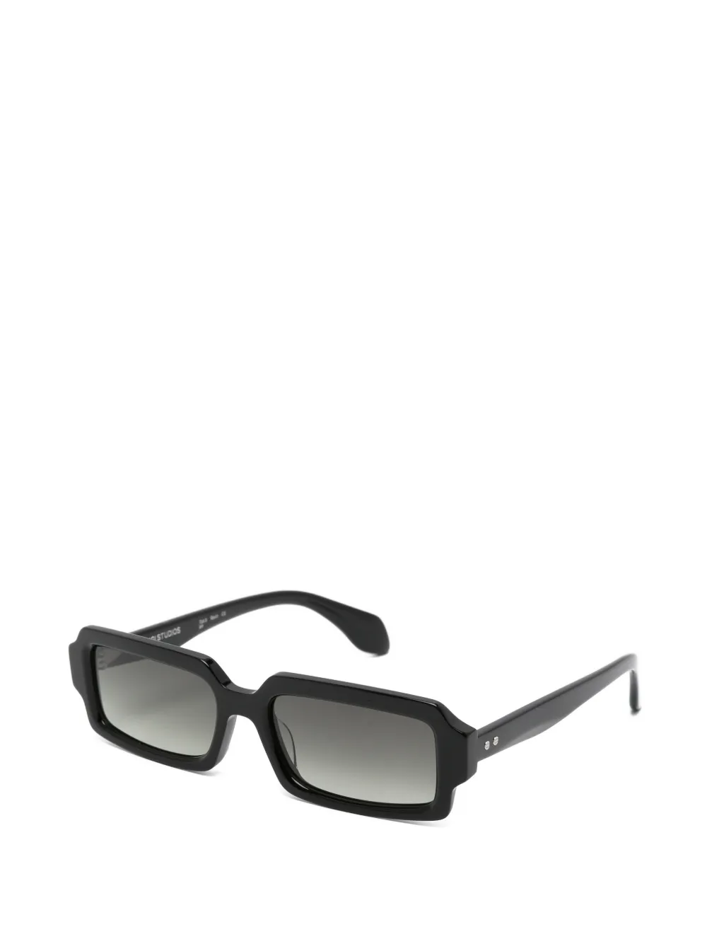 black rectangle frame tinted lenses nose pads These glasses come with a protective case.